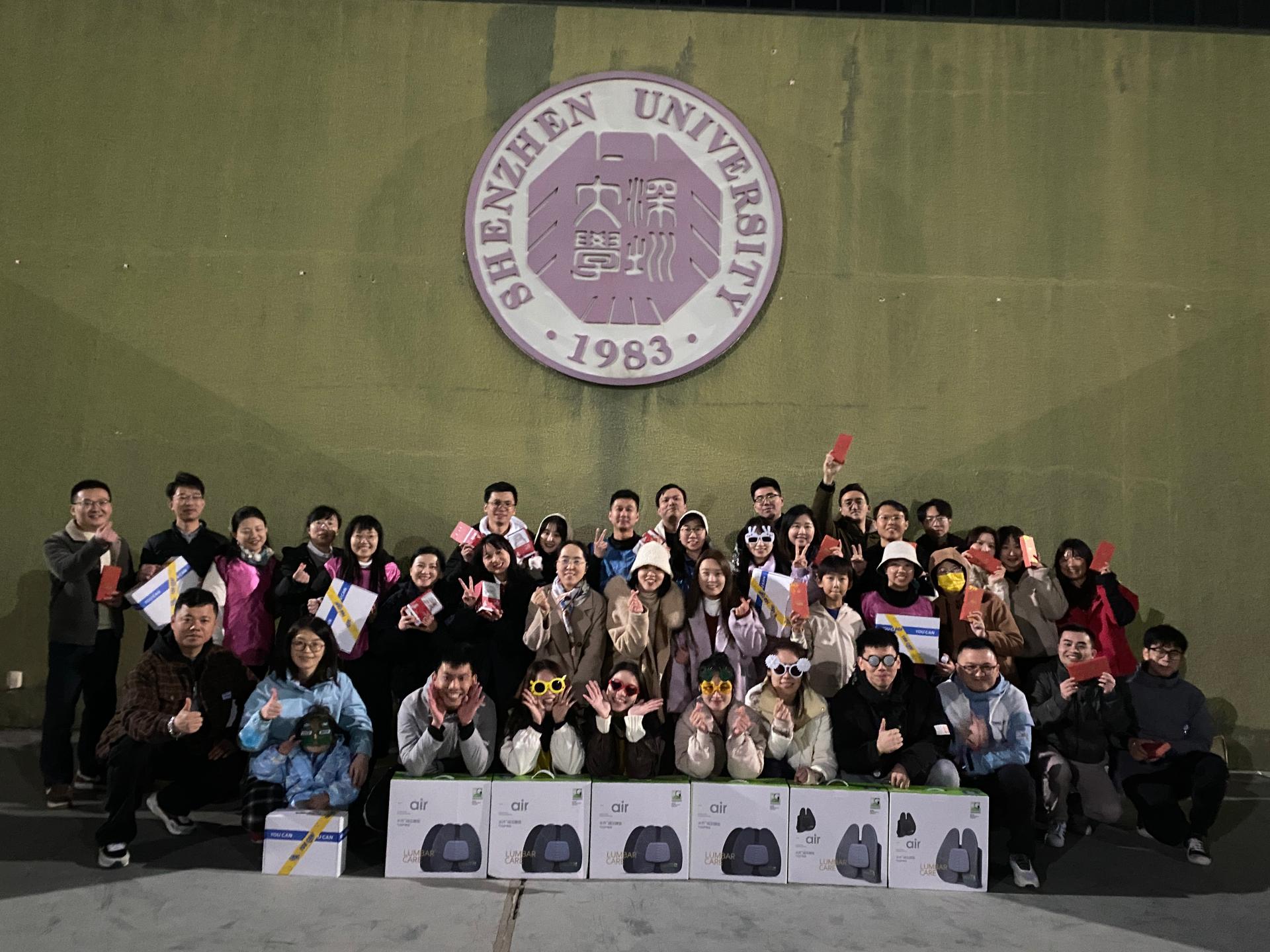游戏结束后,经过紧张的计分环节,教练隆重宣布:黄队荣获第一名,蓝队荣获第二名、红队荣获第三名。获奖的同学们陆续领奖并合影留念,在深圳大学校徽之下,在举起的手机、相机镜头中,随处可见一张张热情洋溢、活力满满的笑脸。