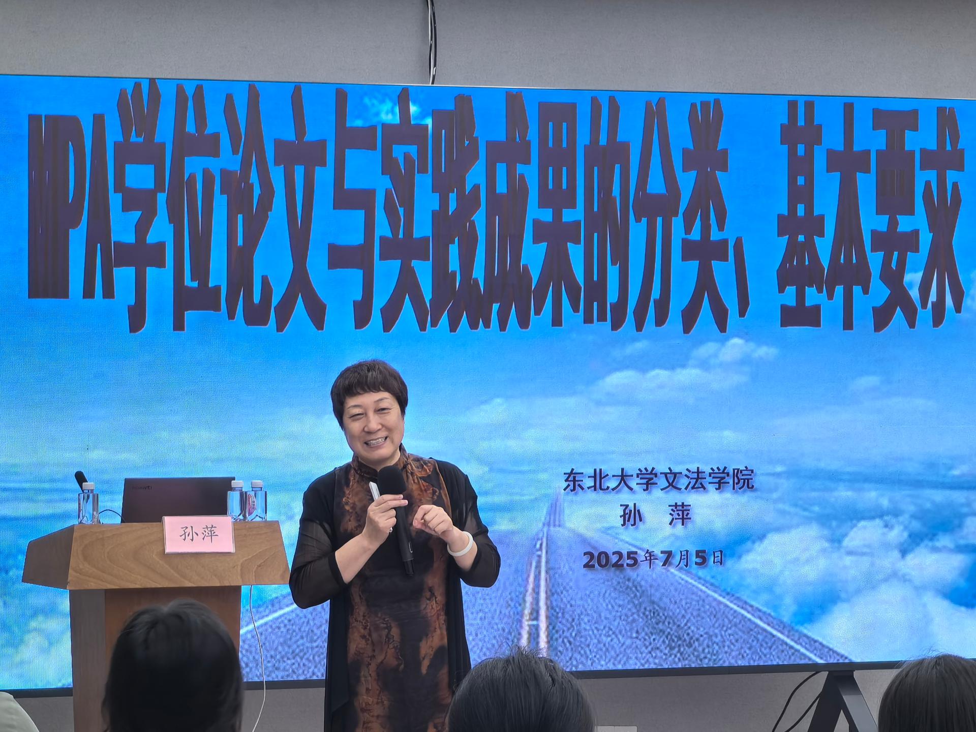 2025年7月5日,深圳大学MPA教育中心特邀教育部高等学校公共管理类学科专业教学指导委员会副主任委员、全国MPA教育指导委员会委员、东北大学文法学院孙萍教授,于守正楼A213会议室开展《MPA学位论文与实践成果的分类与写作》专题讲座。以政策解读为切入点,结合深厚的学术积淀和丰富的指导经验,为师生系统梳理MPA学位成果的规范要求与创新路径。讲座由MPA教育中心主任罗文恩副教授主持。