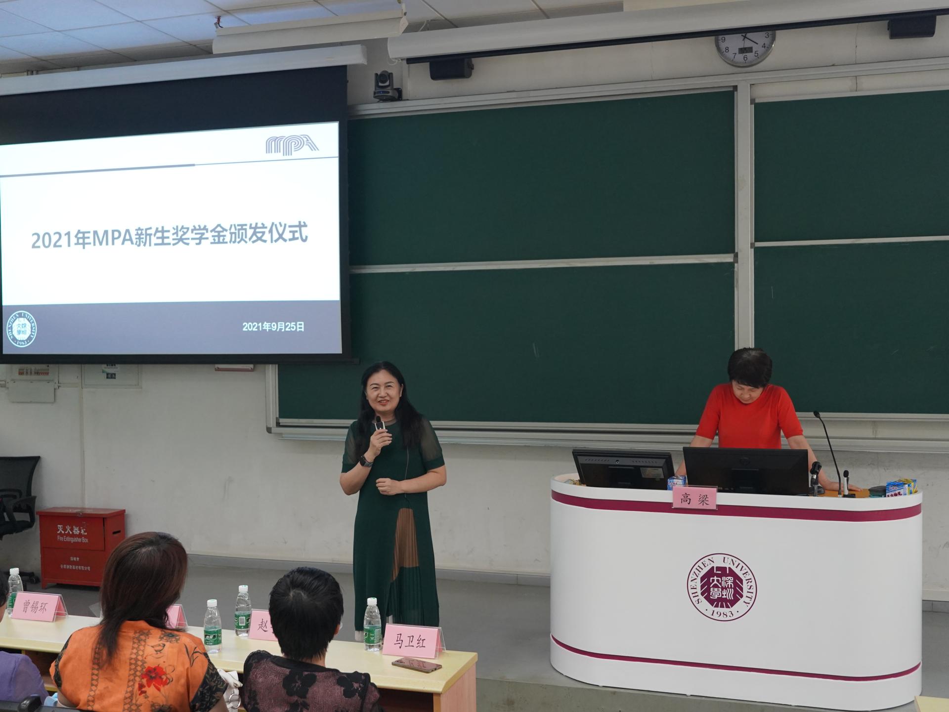 9月25日中午,MPA教育中心在粤海校区汇文楼H-01教室举行了2021年度新生奖学金颁奖仪式暨师生见面会。会议由MPA教育中心高梁主任主持。
