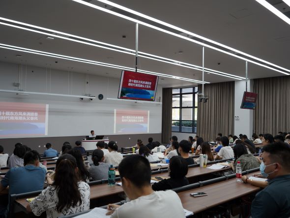 首先,李永华教授以“中心任务”“中国式现代化”“全过程人民民主”“文化自信自强”等关键词为视角,以点及面介绍解读党的二十大报告主要精神;其次,李永华教授以五大发展理念、深圳十大观念以及未来五年深圳发展目标等多个维度对深圳进行“科普”,介绍了深圳新时代新征程的机遇与挑战;随后,李永华教授以立足于“自立,自律,自强”的六字校训,带领学生们进一步“走进”深圳大学,感受校园时代生机;最后,李永华教授勉励学生们强化责任担当、守好廉政底线、发扬合作精神、端正态度、加强学习、全面提升自己。