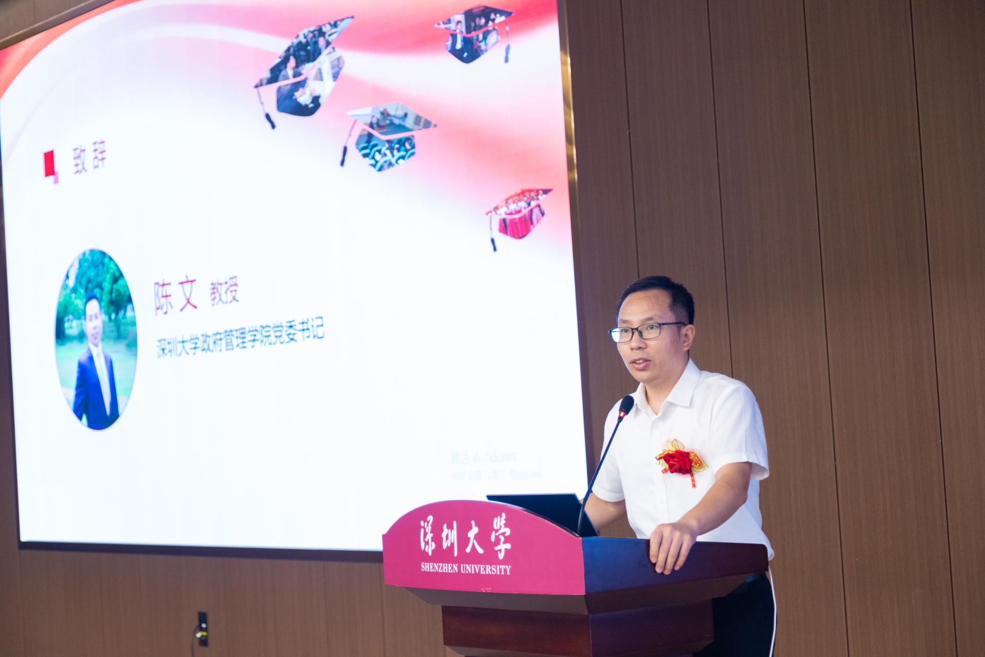 陈文书记首先致辞热烈欢迎2023级MPA新生,他对新同学在深圳大学MPA学习提出了三点建议:一是希望同学们制定合理的计划。“研大千之学,究天人之道”,这是深圳大学是对研究生的理念性要求。“石开合一为研”,就是必须要有金石为开的精神。要想学有所成,就需要在三年的研究生学习期间制定合理的学习计划,处理好工作、生活、学习之间的关系。二是作为公共管理的研究生,希望大家秉持公共精神。既要有天下为公的情怀,也要有服务精神,并践行在学习、工作、生活中。三是希望同学们树立管理思维,把工作当中的管理实践和书本中的理论性总结结合起来,希望同学们三年期间学有所长,为事业进步奠定一个良好的基础。