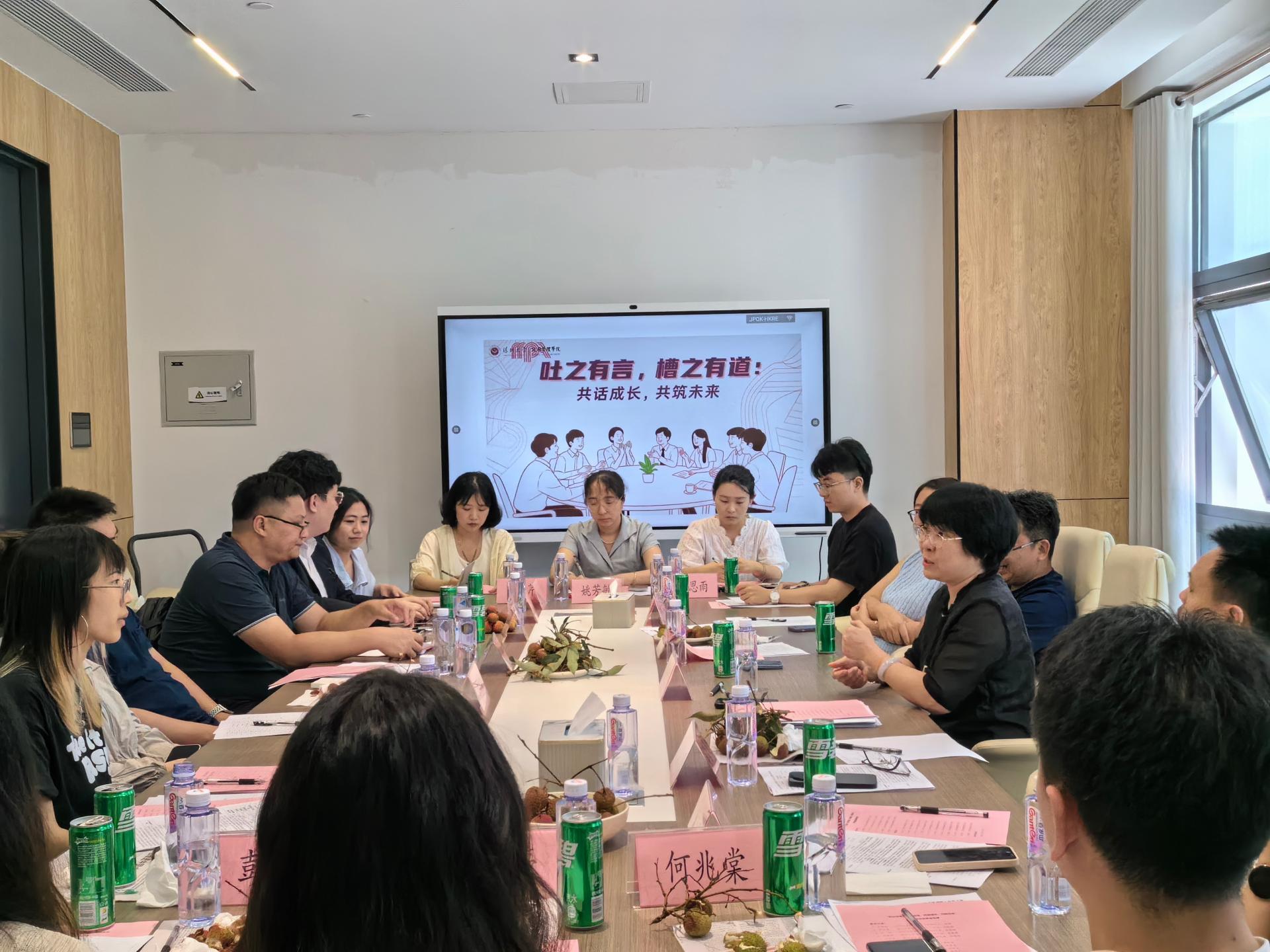 6月8日中午,深大MPA教育中心在丽湖校区守正楼B203会议室举办了一场别开生面的师生交流会。桌面上的荔枝散发着夏日甜香,为这场以"吐之有言,槽之有道:共话成长,共筑未来"为主题的MPA吐槽大会增添了轻松愉悦的氛围。